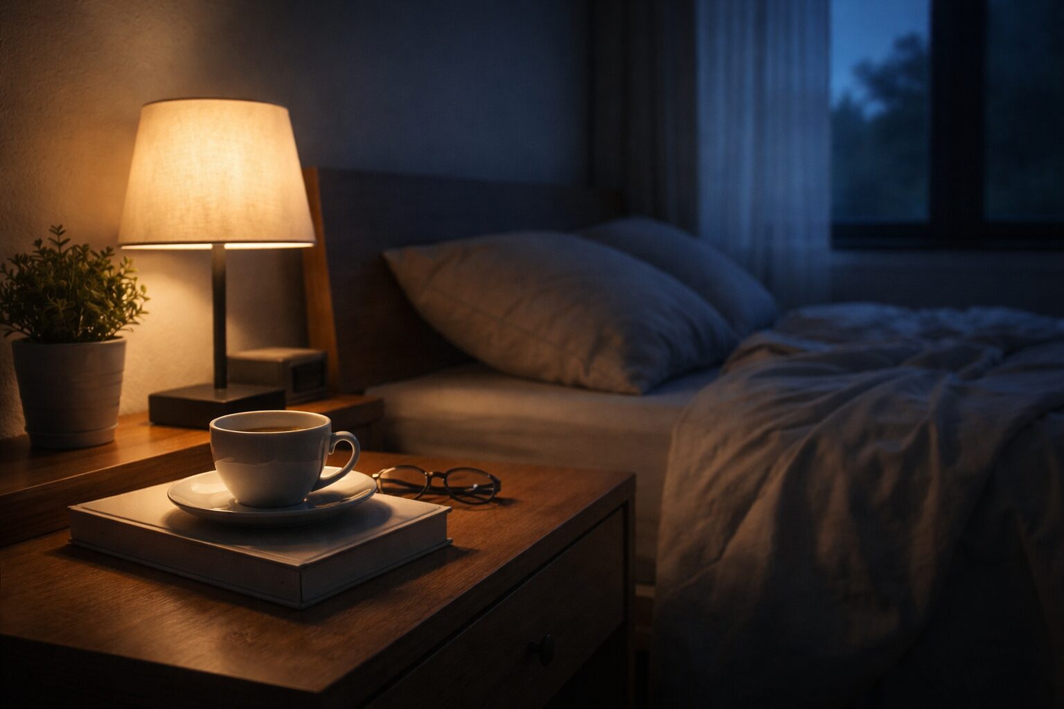 残念ながら、体内のカフェインを素早く排出する確実な方法はありません。水分を多めに摂ることで代謝を少し助けることはできますが、根本的にはカフェインが半減するまで待つしかありません。今夜できることは、体温・光環境・気持ちを整えて「眠れる条件」をつくることに集中することです。