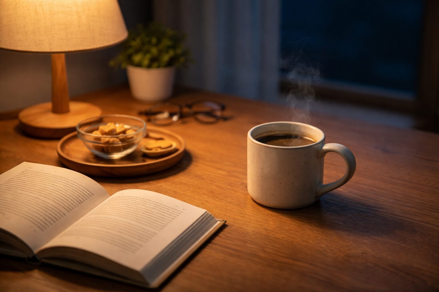 ただしこれは「温かいデカフェをゆっくり飲む」という行動全体の効果でもあります。スマホを置いて、温かいカップを両手で持ち、香りをゆっくり吸い込む——この一連の動作が副交感神経を優位にし、入眠の準備を整えてくれます。