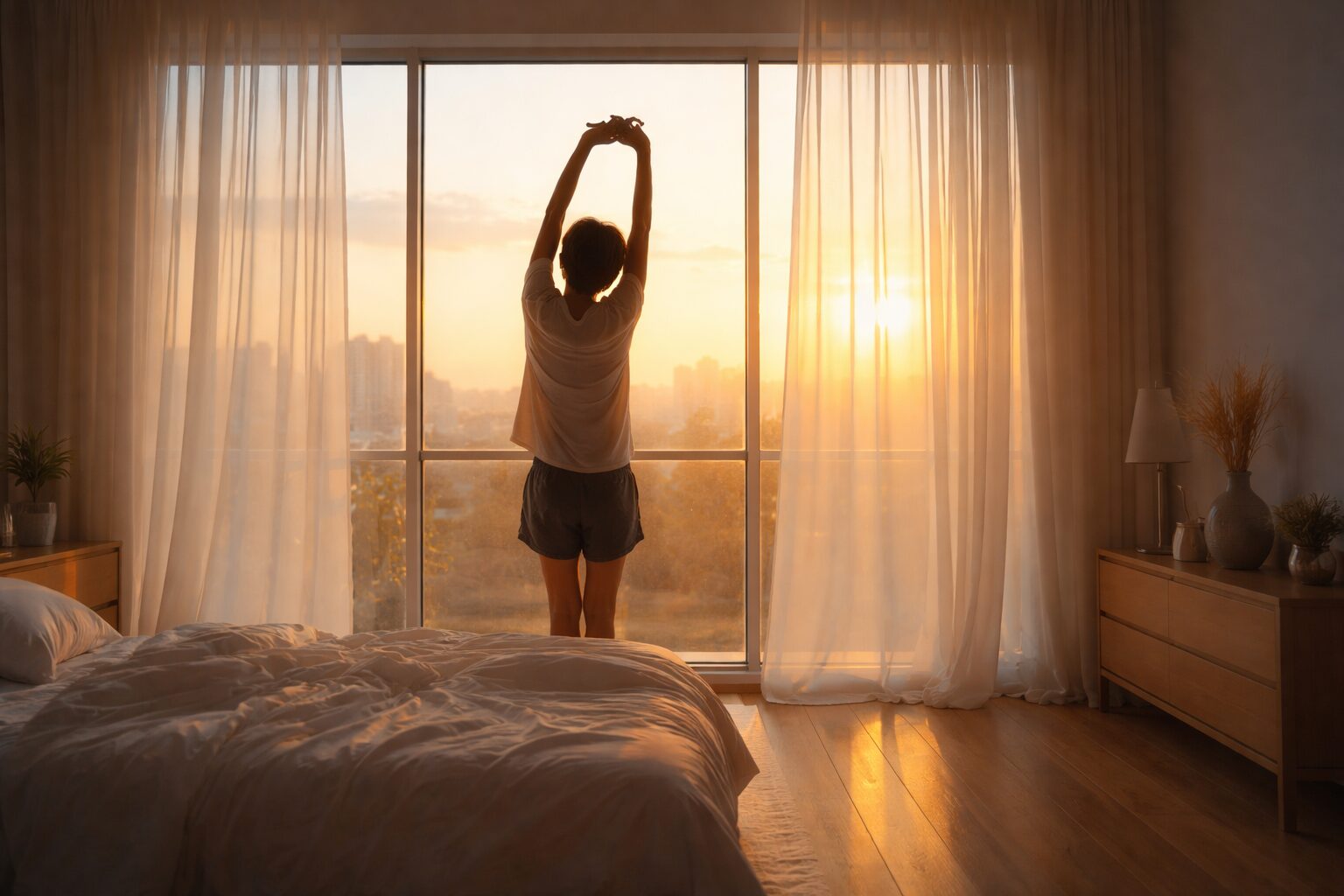• 起床後すぐに朝日を浴びる:体内時計をリセットし、翌日のコルチゾール覚醒反応をさらに安定させます